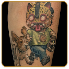 Originario de Ciudad Nezahualcóyotl, Estado de México. Diseñador Gráfico, tatuando desde 2008. Creador del Crayola Style, también se especializa en Realismo a Color, JapoMex y Black & Grey.